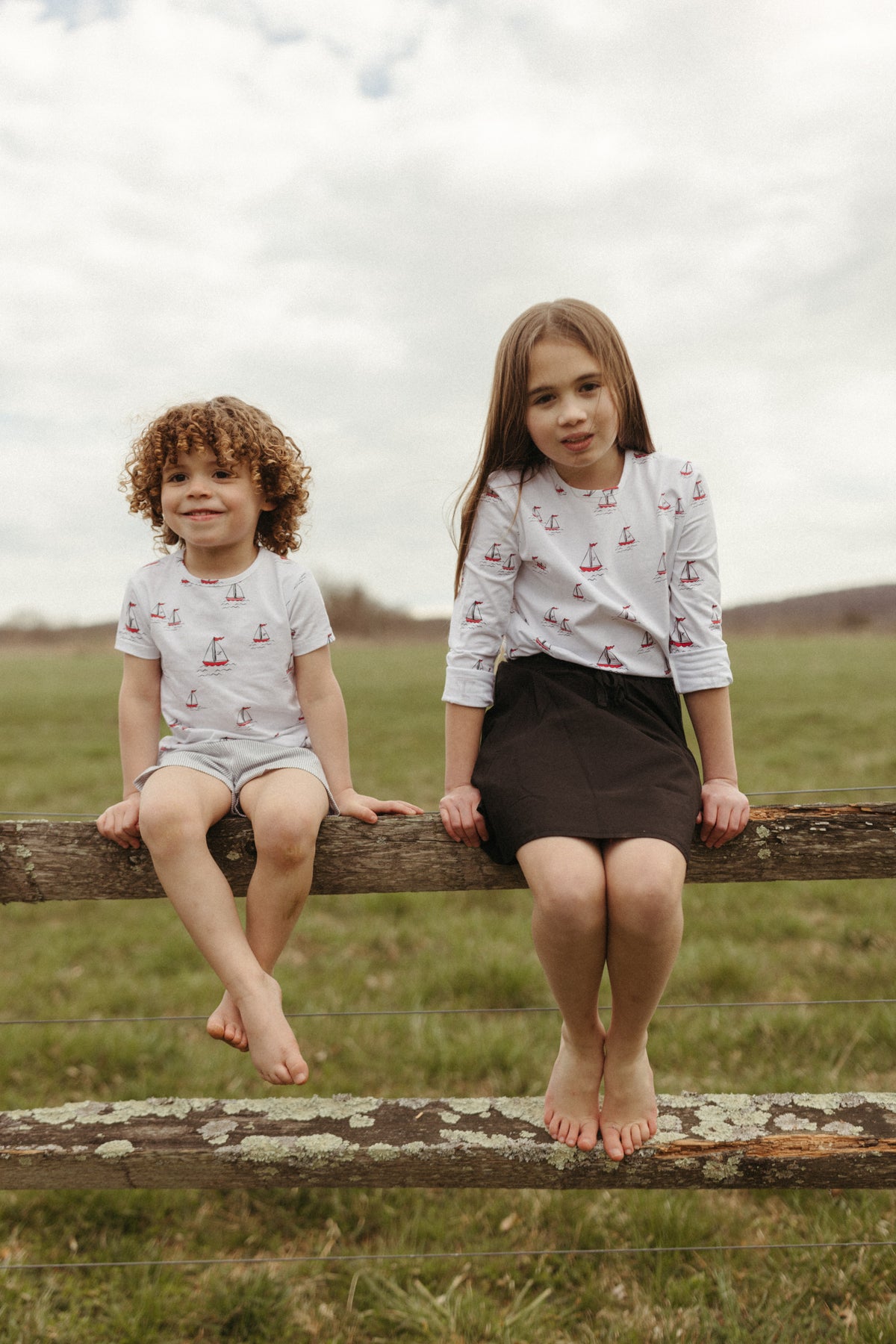 1 Pc. All Over Boat Print Long Sleeve T-shirt l- White