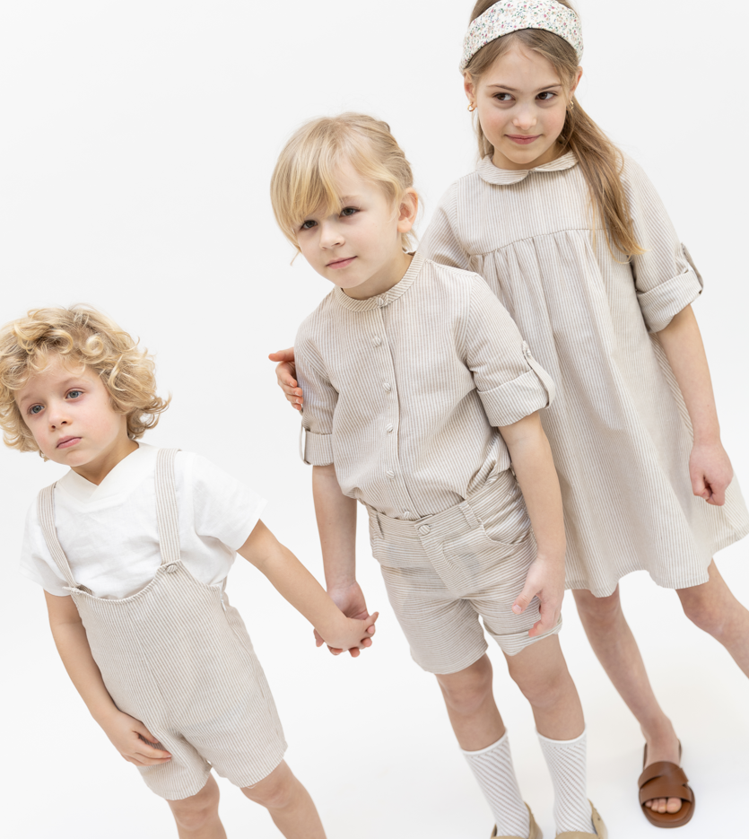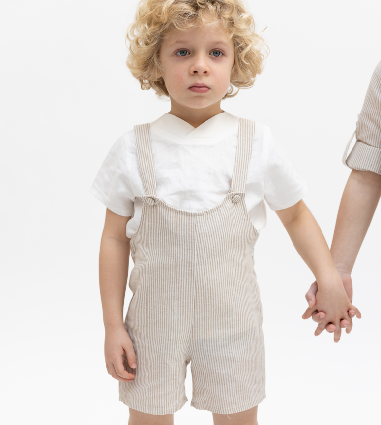 1 Pc. Baby Linen Striped Overall - Beige