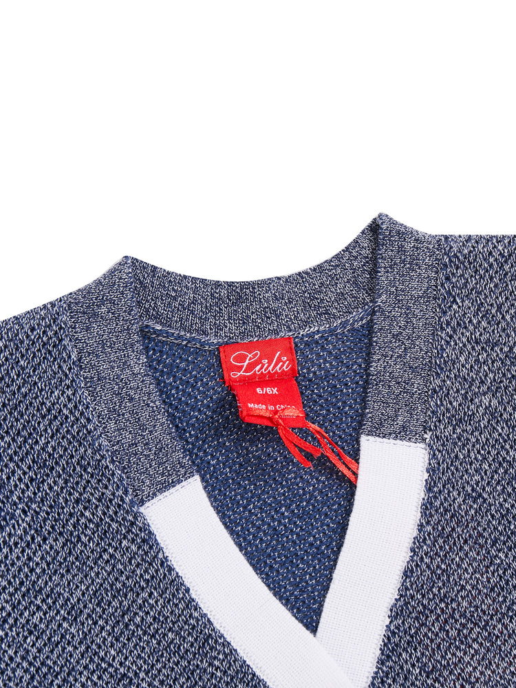 1 Pc. Cardigan Rectangle Mix Sweater - Navy White Mix