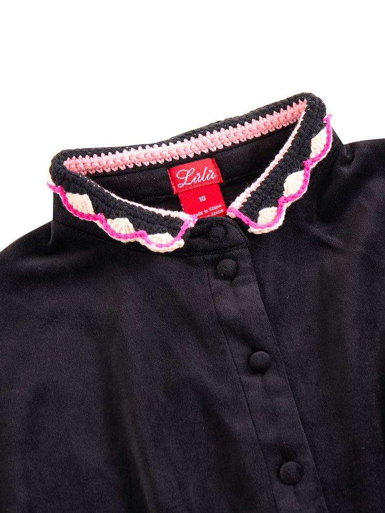 1 Pc. Crochet Collar Robe - Black/Multi-color