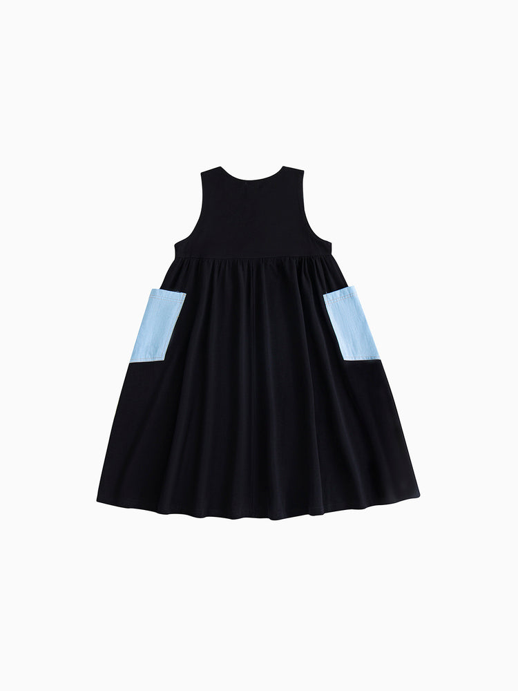 1 Pc. Denim Side Pockets Jumper - Black/Lt. Blue