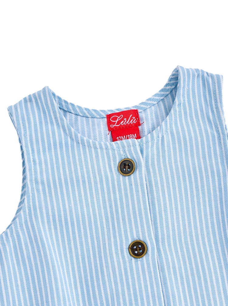 1 Pc. Denim Stripe Romper - Lt. Blue