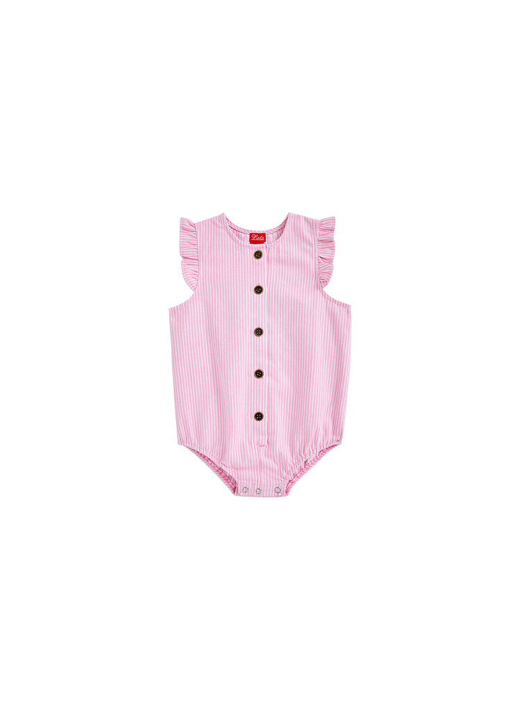 1 Pc. Denim Stripe Ruffle Romper - Lt. Pink