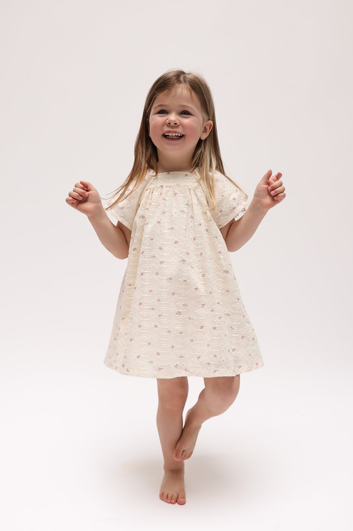 1 Pc. Eyelet Floral Dress - Off-White/Pink