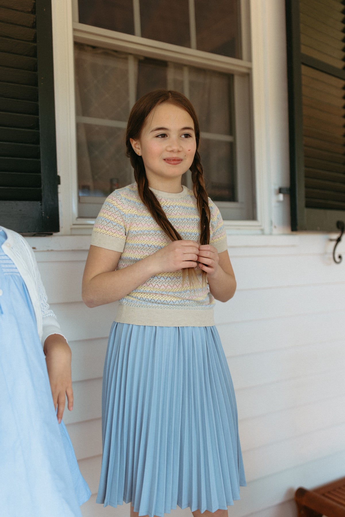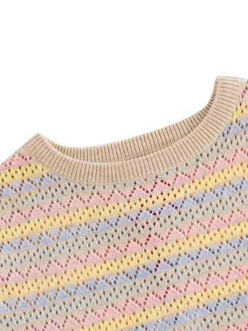 1 Pc. Eyelet Short Sleeve Sweater - Lt. Cream Mix