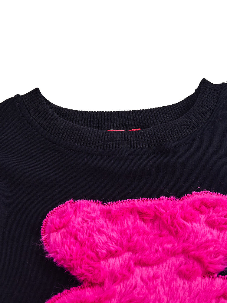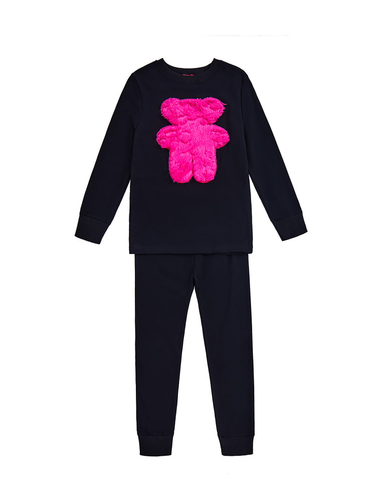 2 Pc. Fur Bear Pajamas - Black/Hot Pink