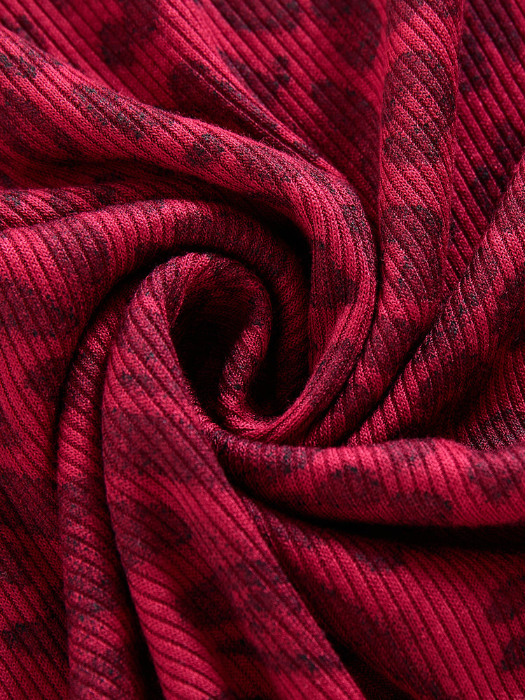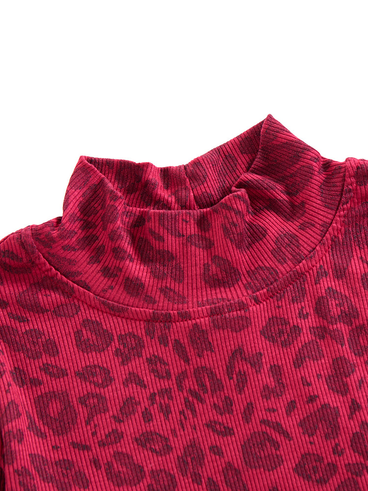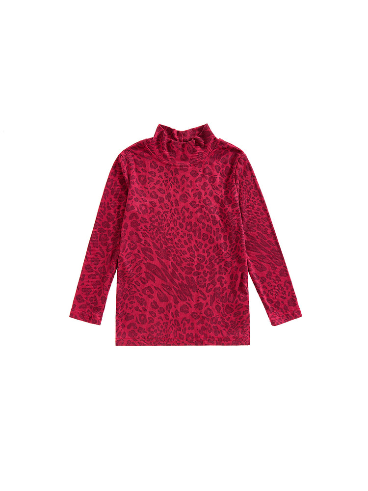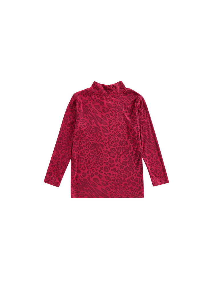 1 Pc. Leopard Mock Neck T-shirt - Burgundy
