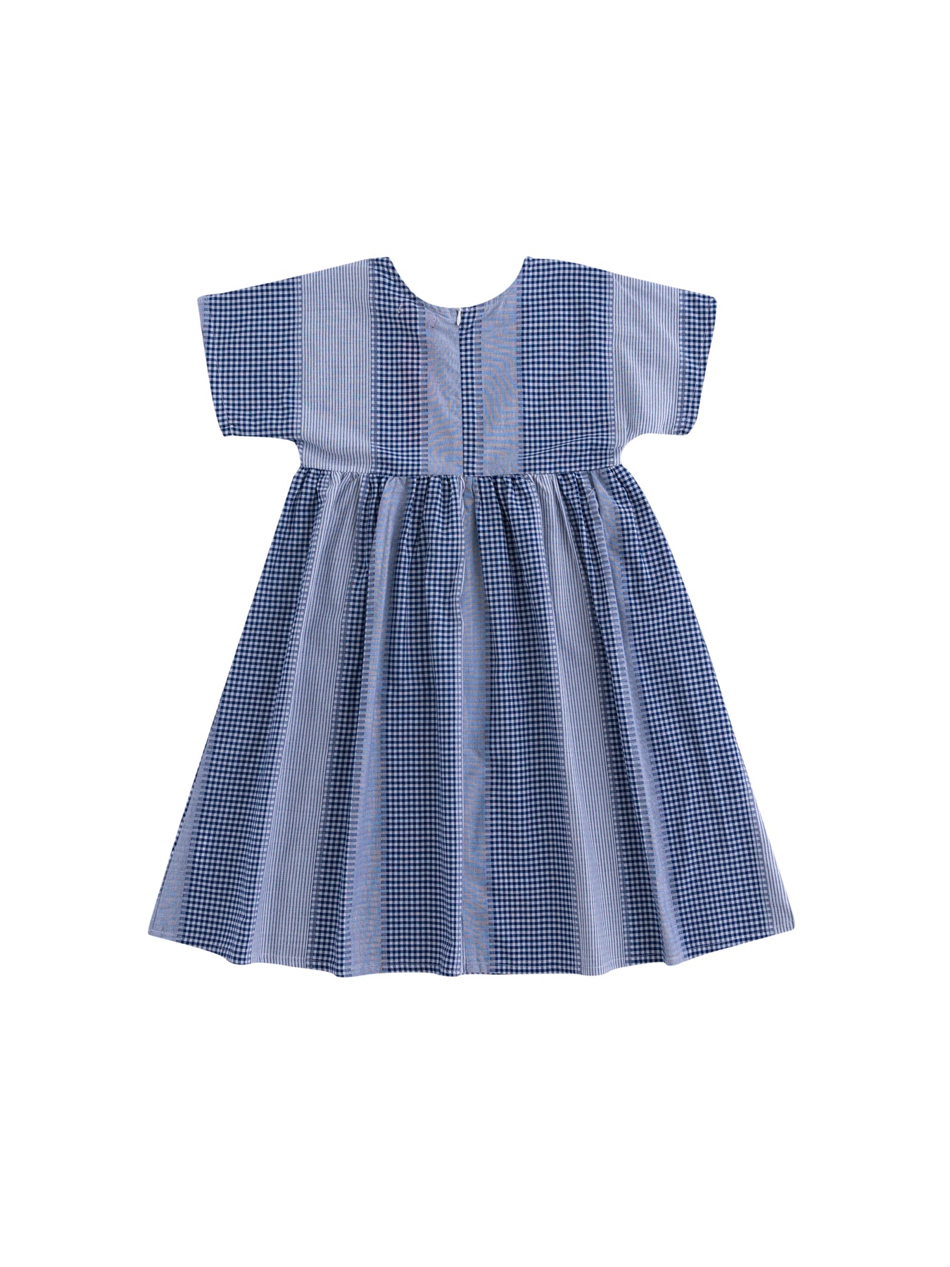 1 Pc. Patchwork Gingham Dress - White/Blue