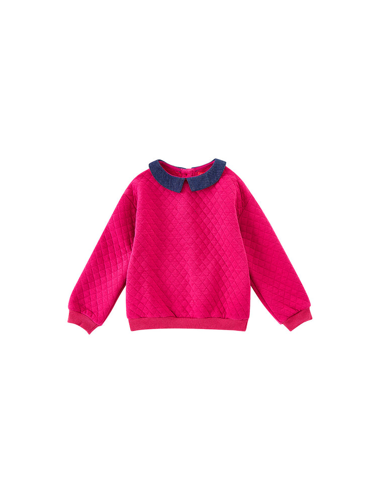 1 Pc. Quilted Combo Collar Top - Berry/Navy