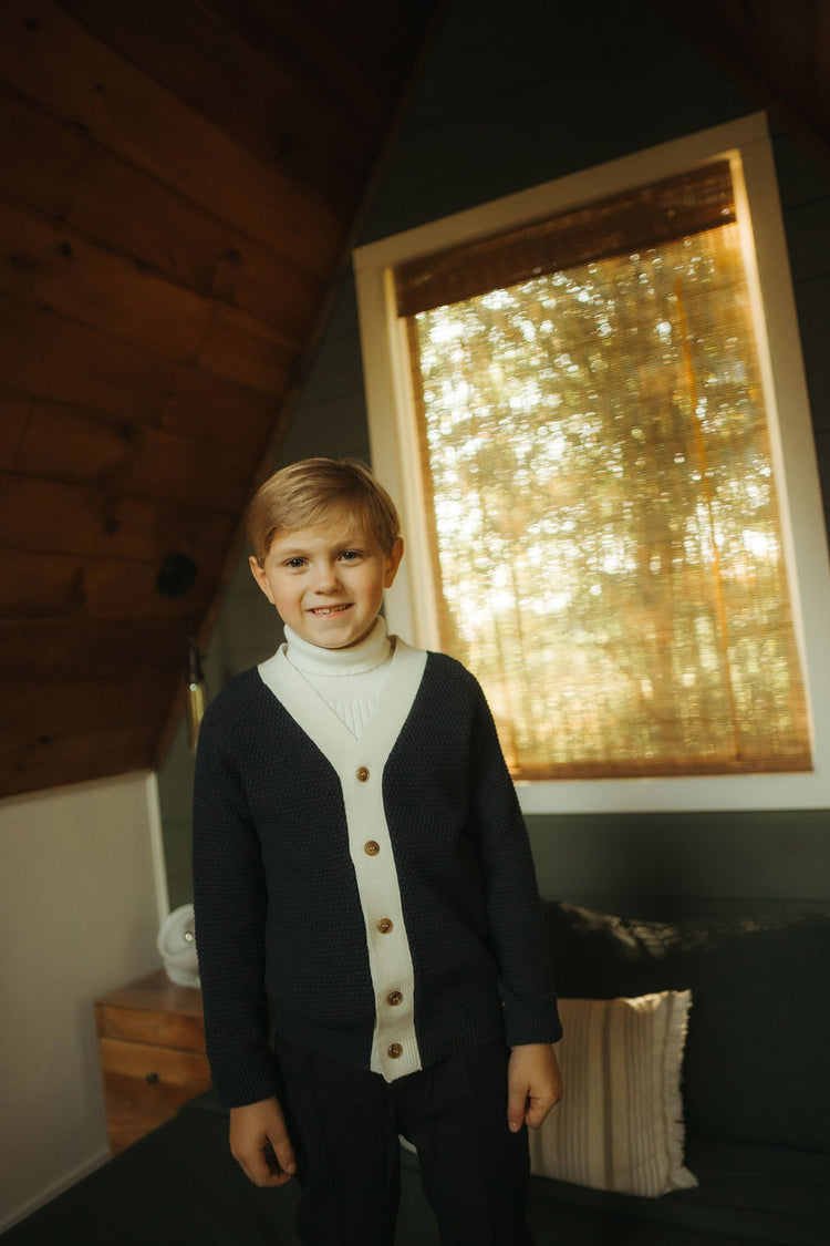 1 Pc. Raised Bubble Knit Cardigan - Charcoal Mélange