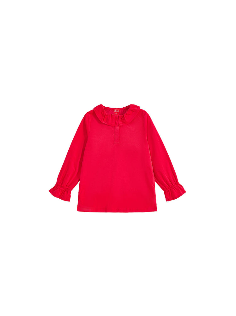 1 Pc. Ruffle Corduroy Shirt- Coral