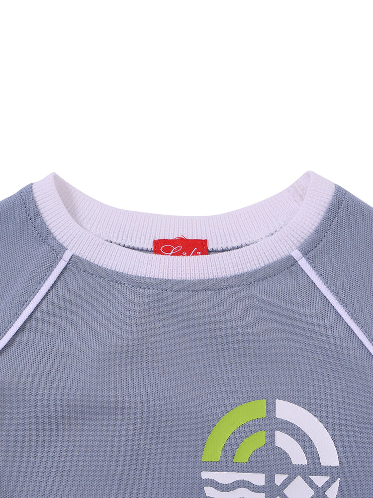1 Pc. Side Print Long Sleeve Top - Stone Blue