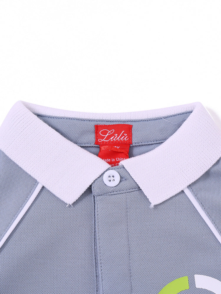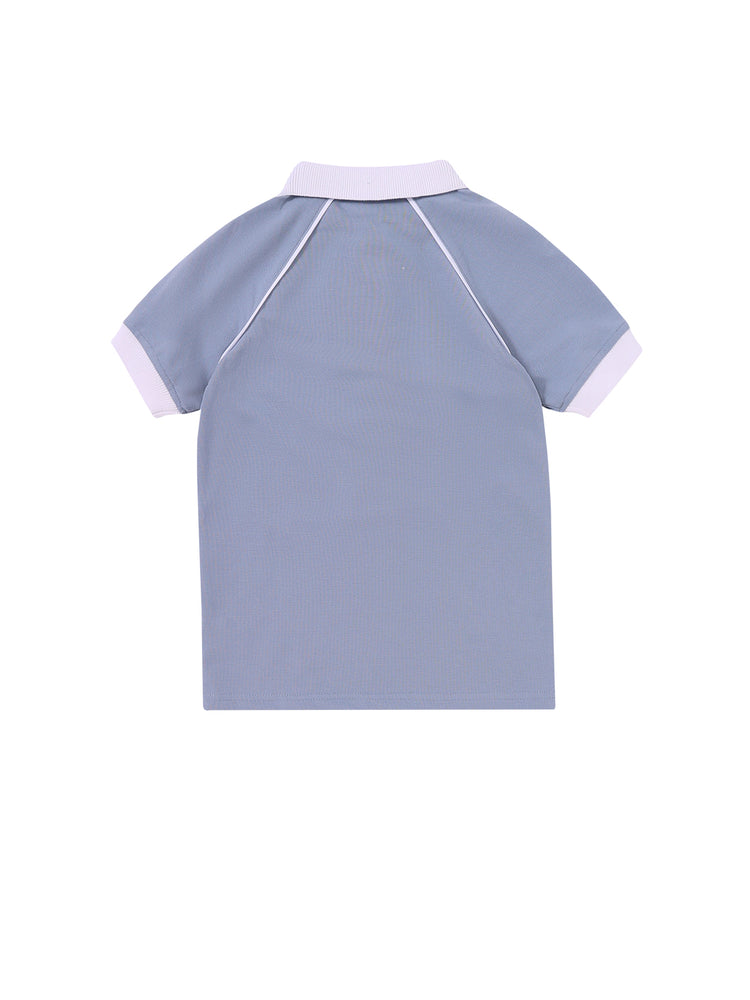 1 Pc. Side Print Short Sleeve Polo - Stone Blue
