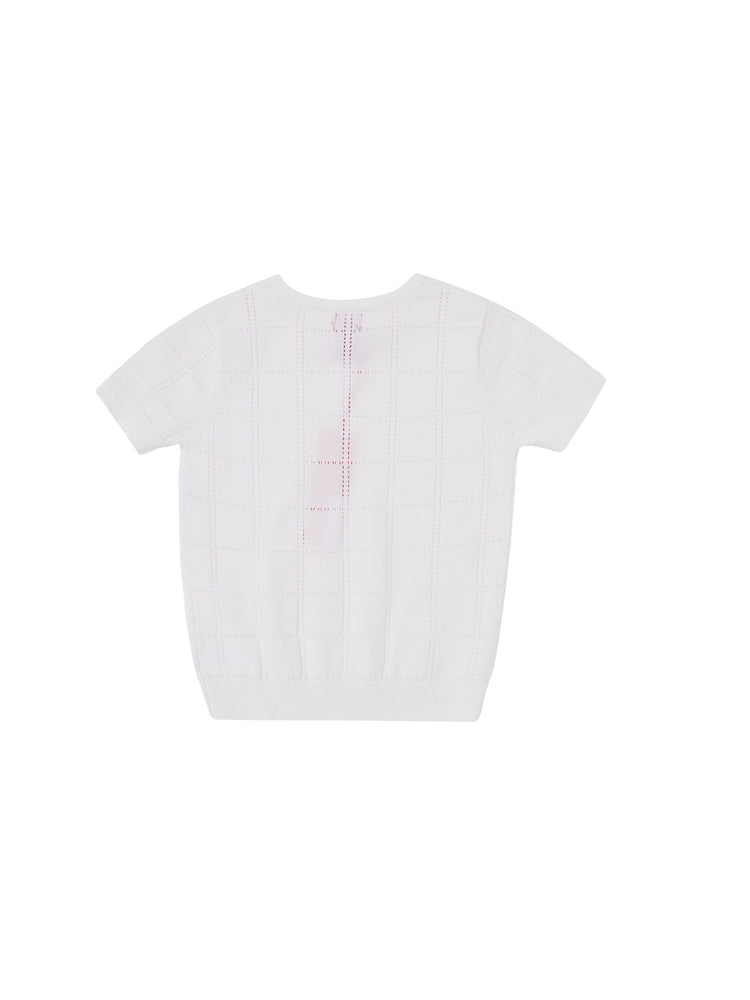 1 Pc. Square Eyelet Short Sleeve Sweater - Off White