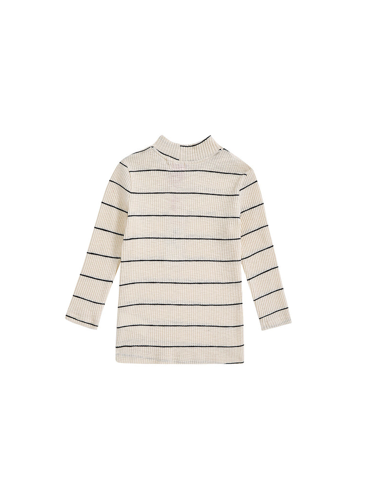 1 Pc. Striped Mock Neck T-shirt - Black/White