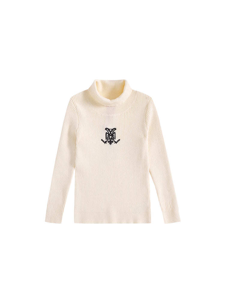 1 Pc. Turtleneck Emblem Sweater - Almond White