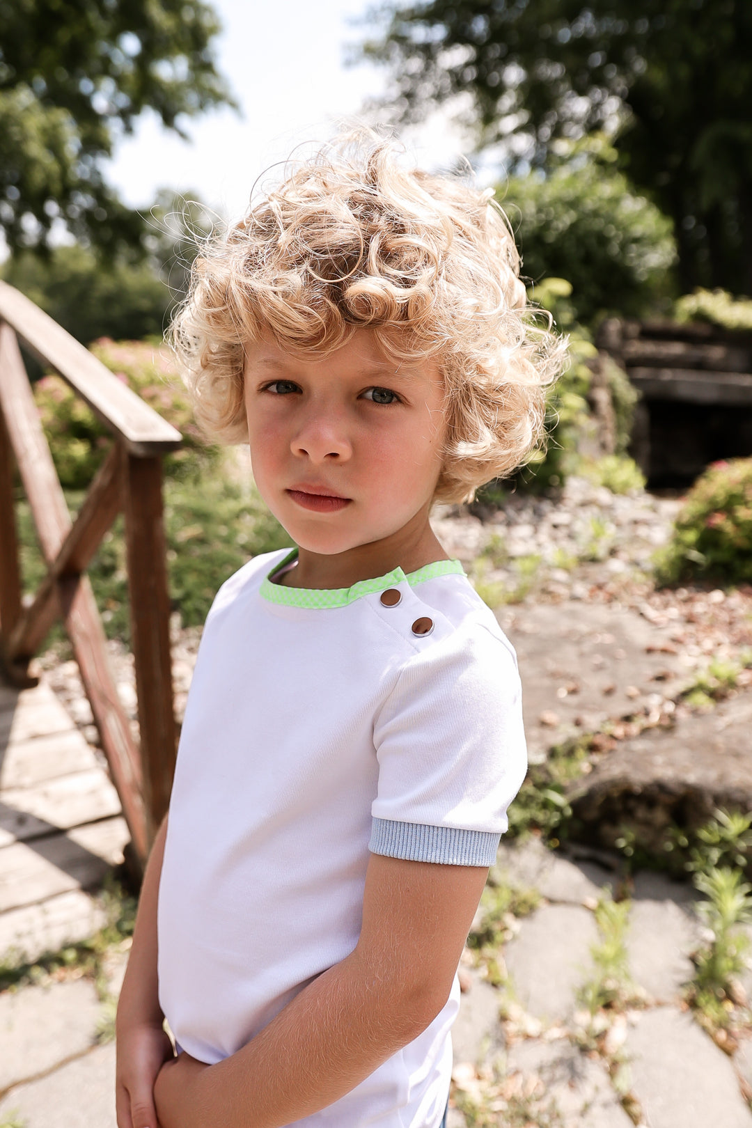 Front Button Short Sleeve Sweater - Lt. Mint Green Mix