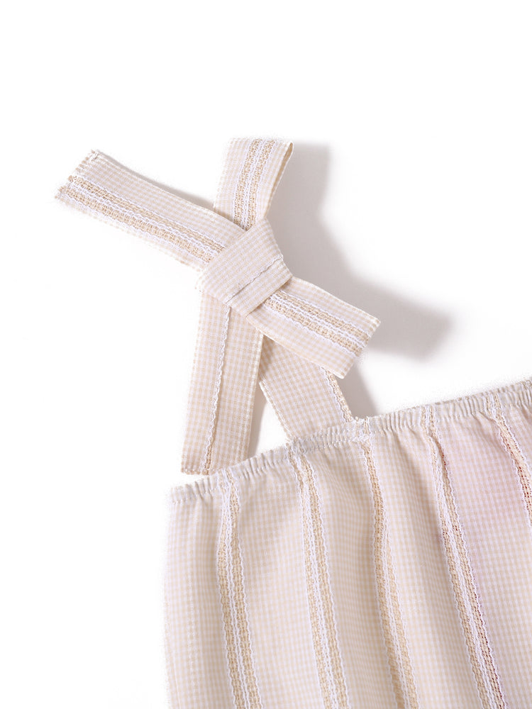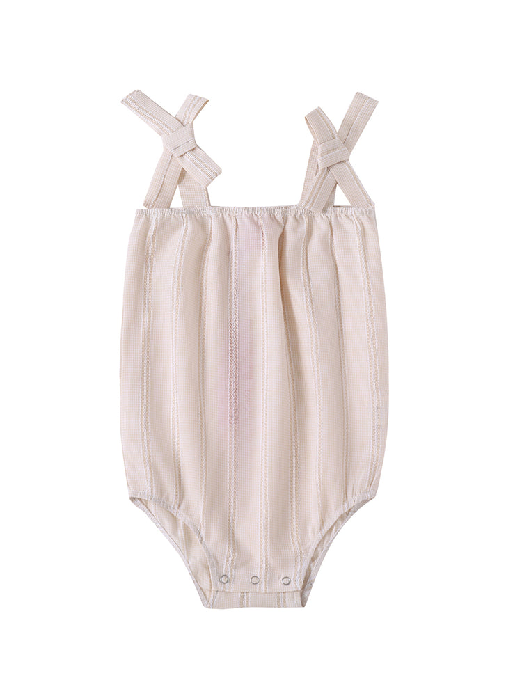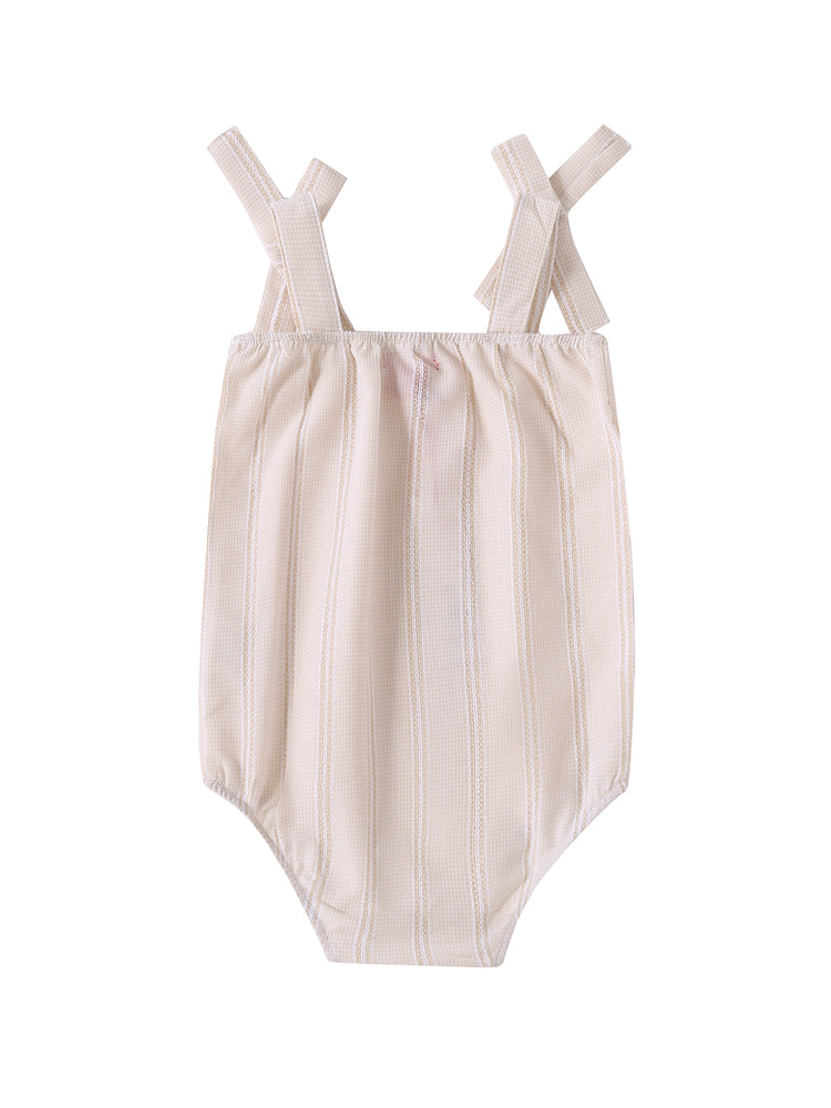 1 Pc.Baby Gingham Crochet Striped Romper - Beige
