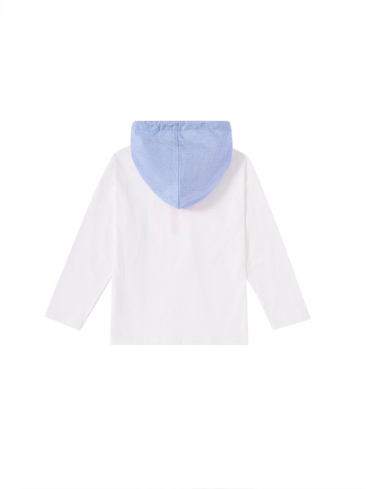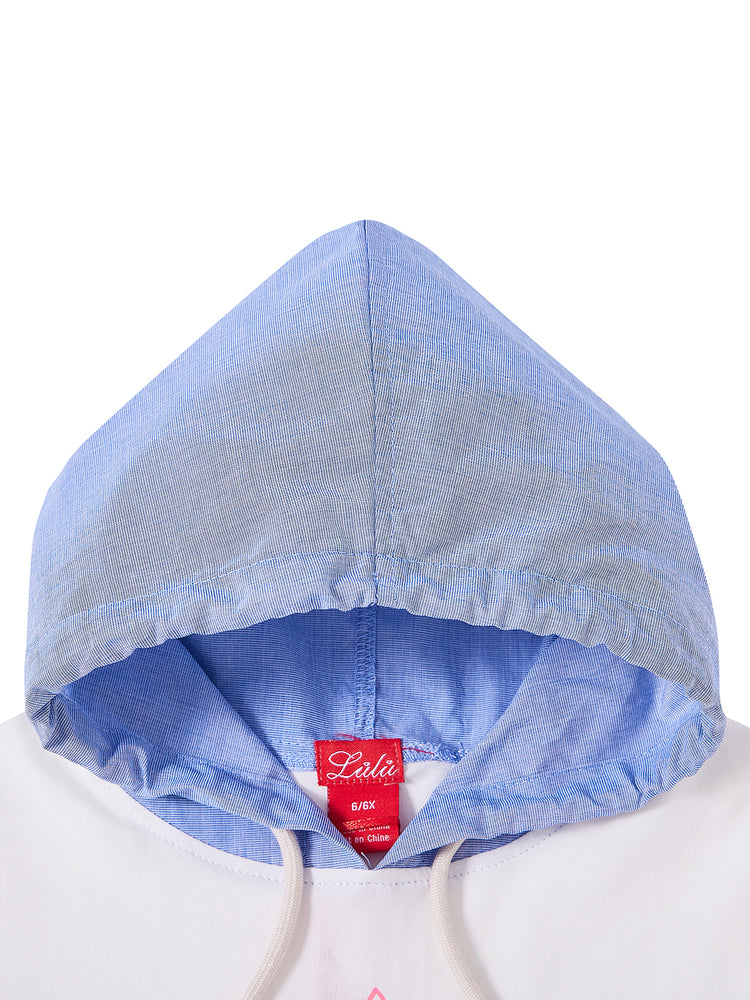 1 Pc. Big Print Hooded Top - White/Neon Pink
