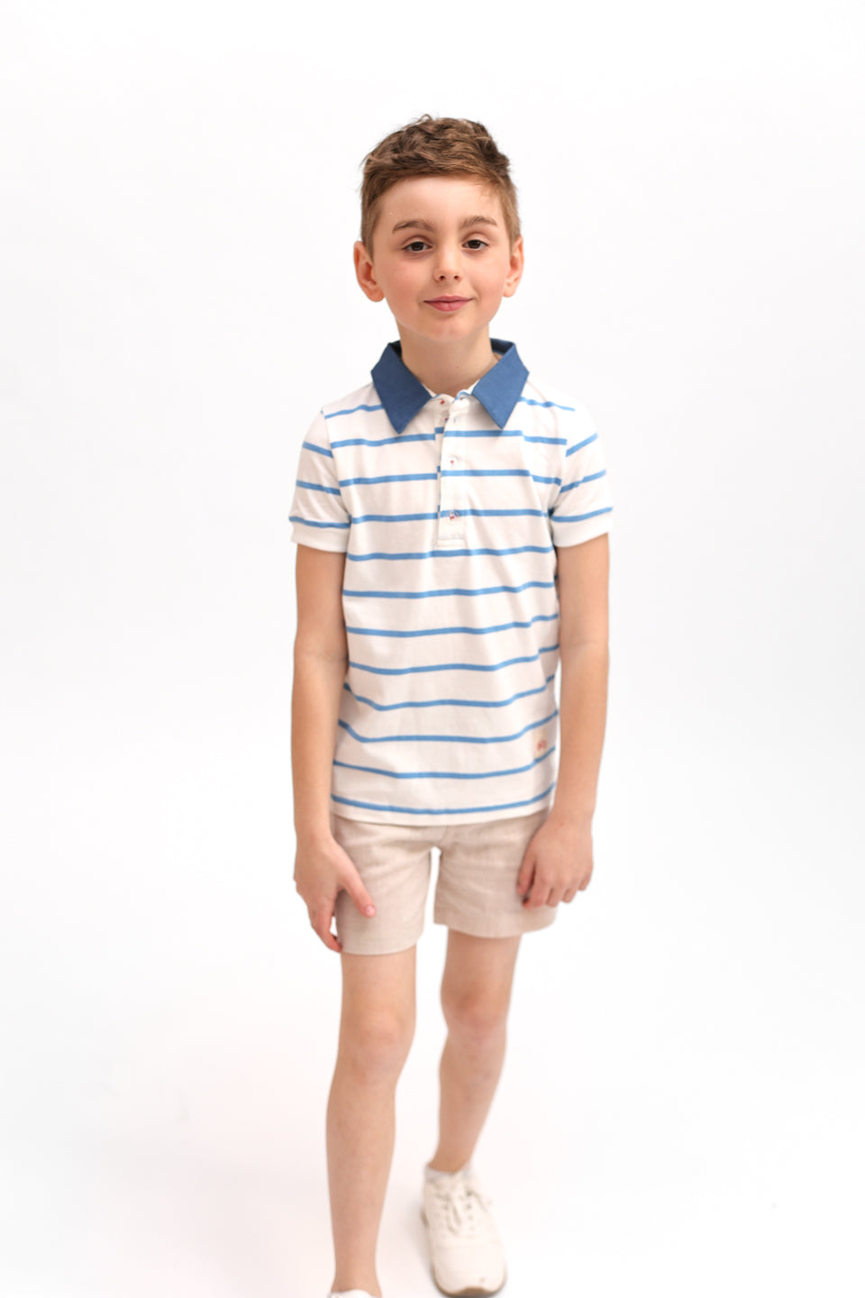 1 Pc. Combo Collar Short Sleeve Polo - White/Blue