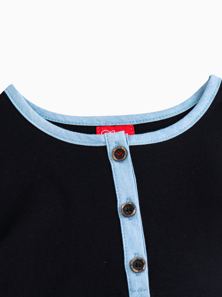 1 Pc. Denim/White Two-Tone Top - Black/Lt. Blue