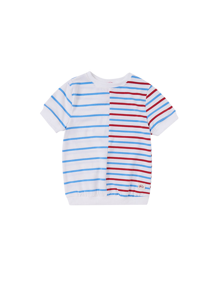 1 Pc. Half Striped Short Sleeve Top - White/Blue