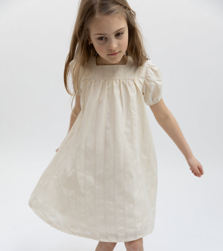 1 Pc. Lace Insert Dress - Beige