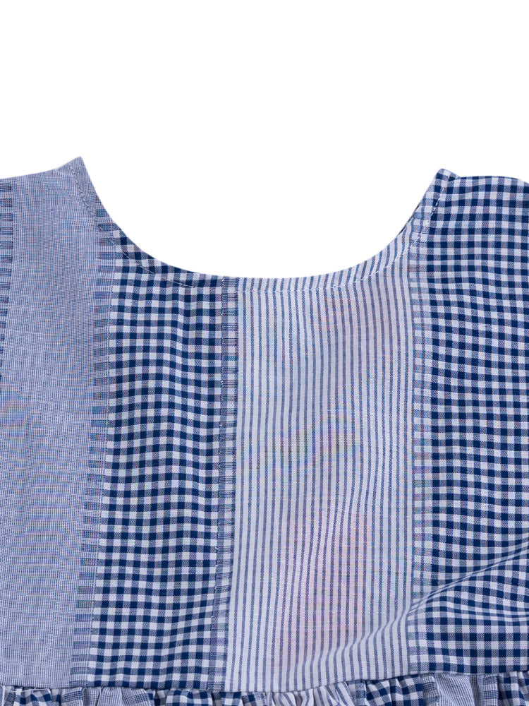 1 Pc. Patchwork Gingham Dress - White/Blue