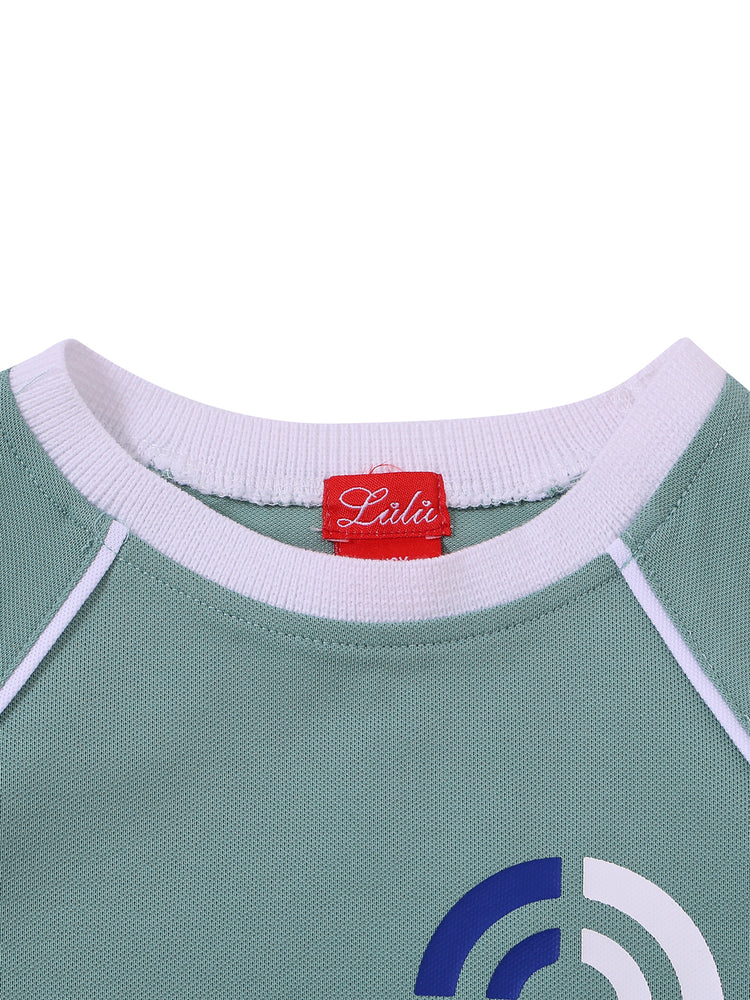1 Pc. Side Print Long Sleeve Top - Seafoam/White