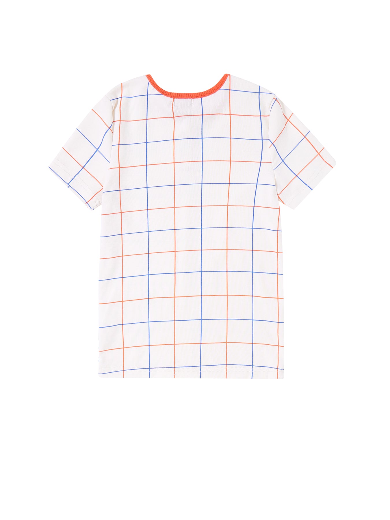 1 Pc. Square Print Short Sleeve T-shirt - Off White/Orange