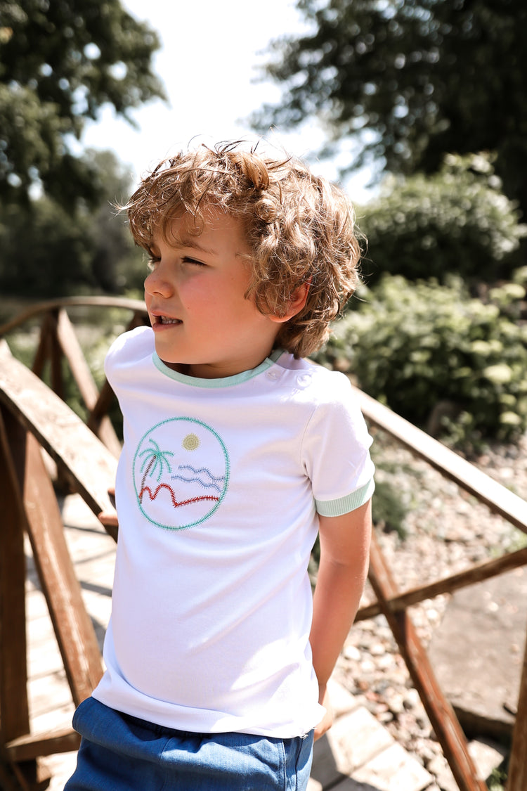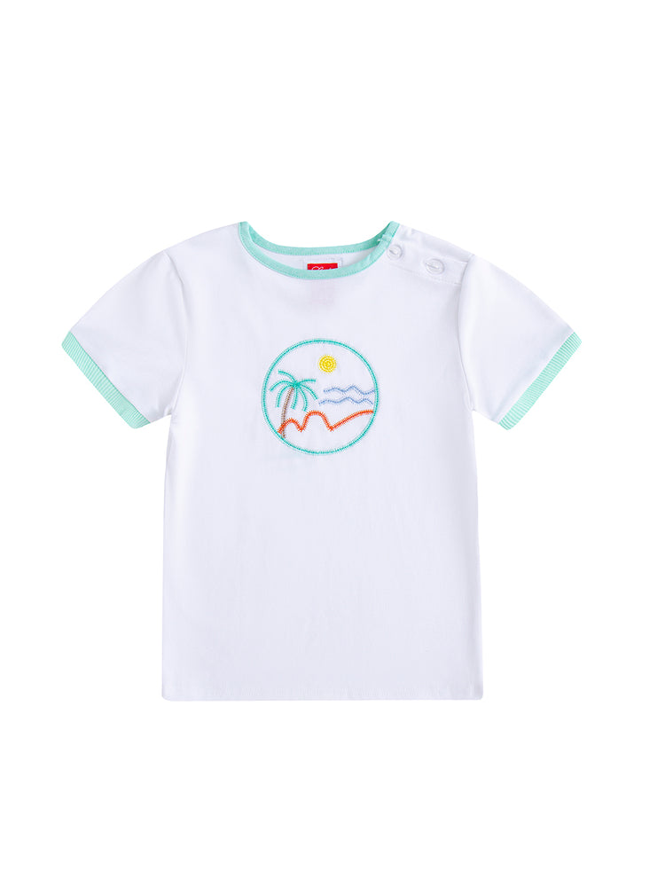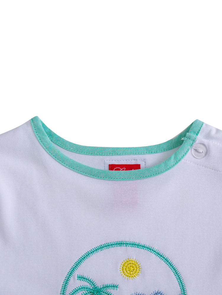 1 Pc. Summer Short Sleeve T-Shirt - White/Green