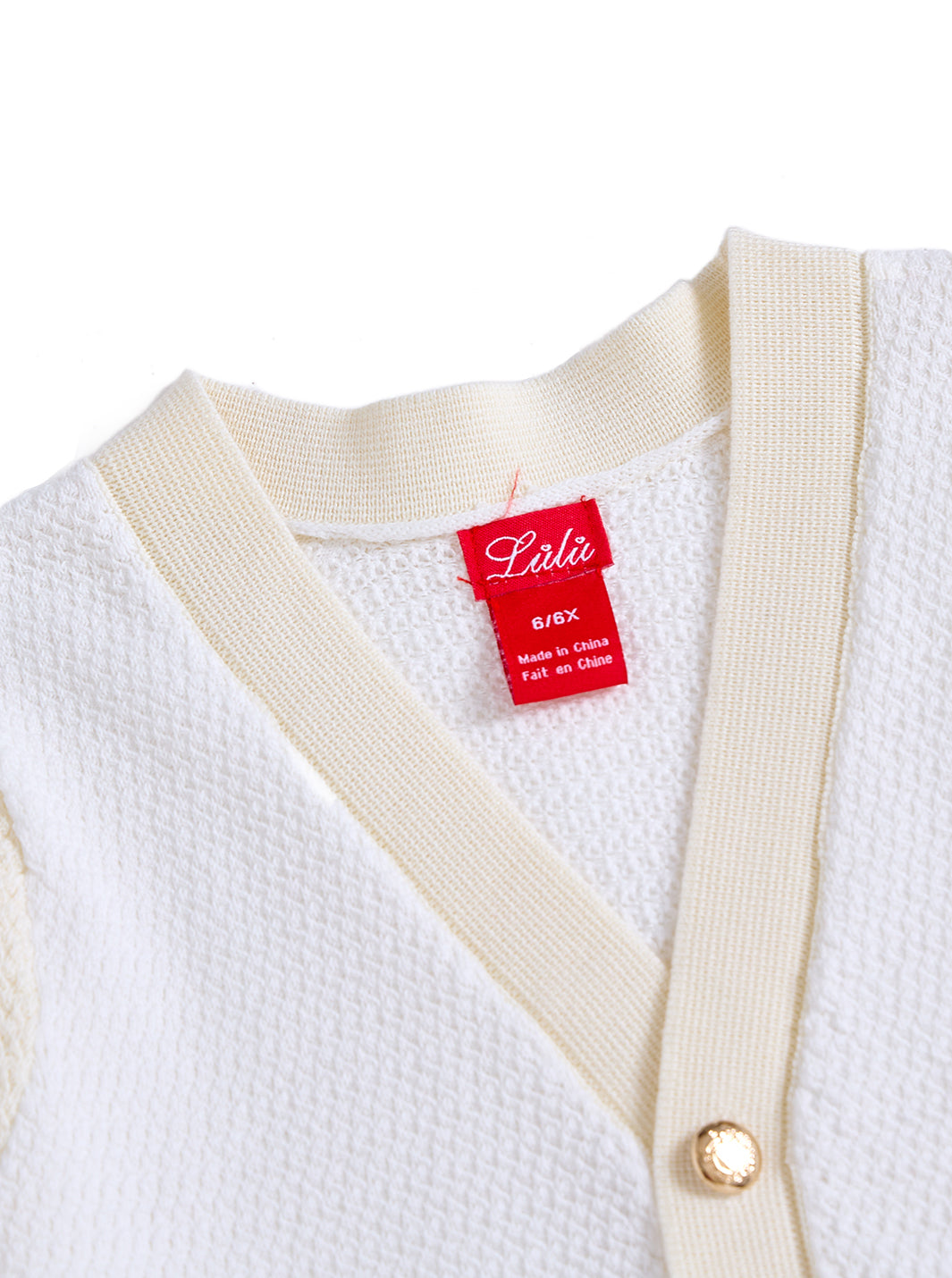 1 Pc. Cardigan Combo Color Sweater - Ivory White