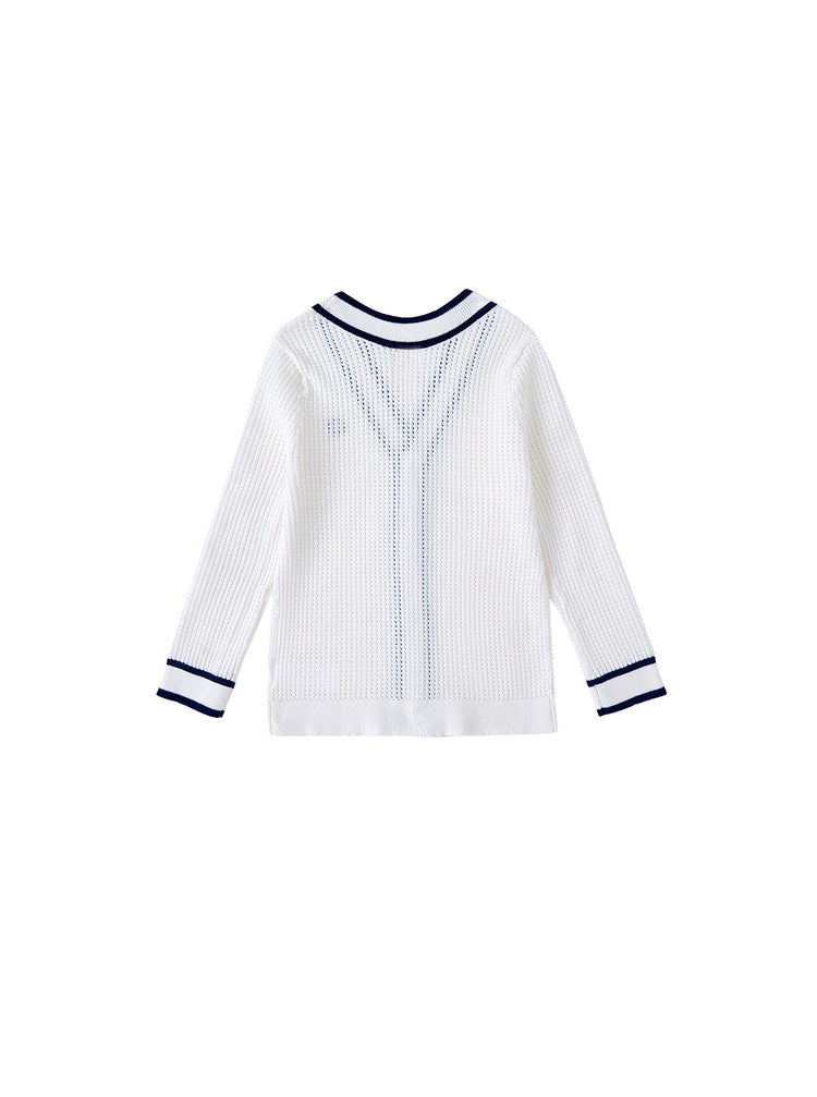 1 Pc. Cardigan Emblem Sweater - Cream White