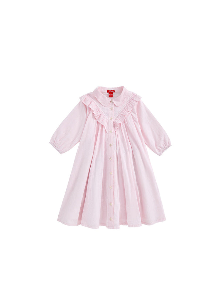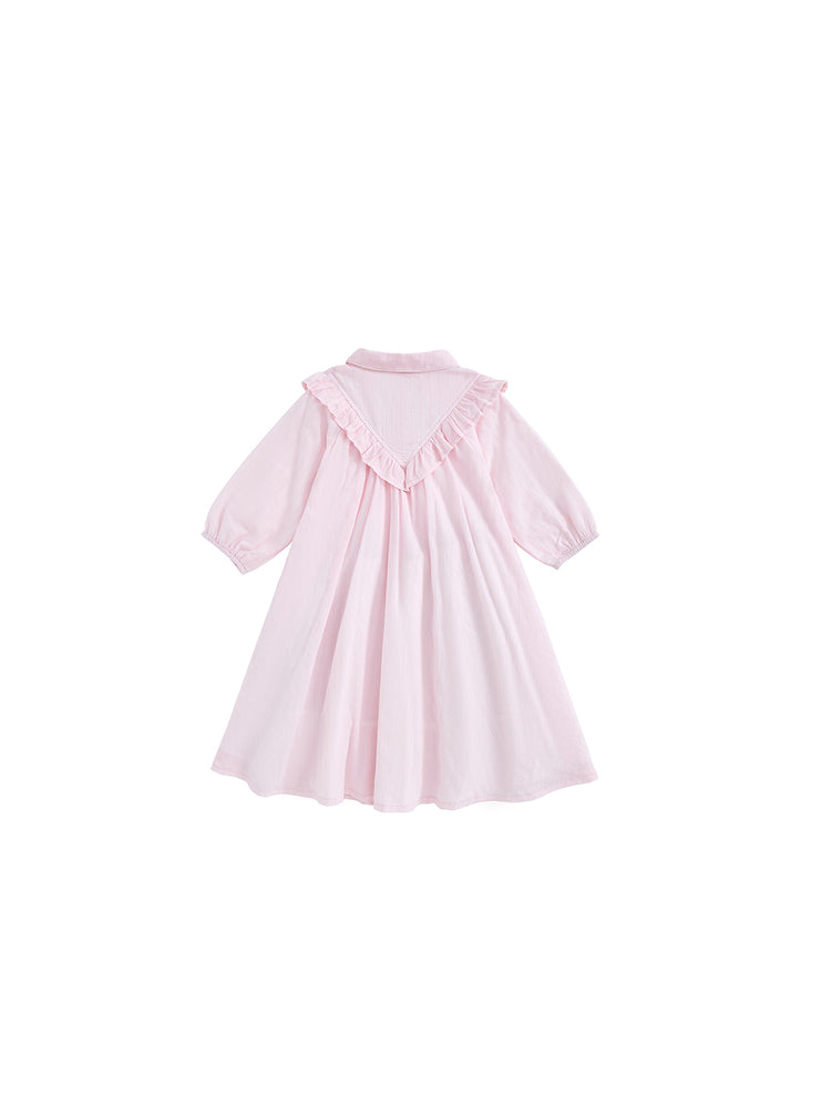 1 Pc. Eyelet Striped Ruffle Dress - Pink