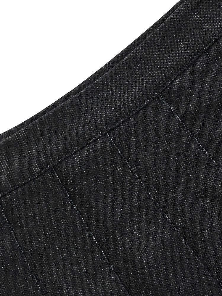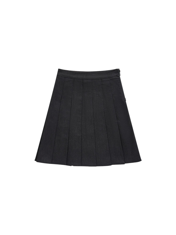 1 Pc. Denim Pleated Skirt - Black