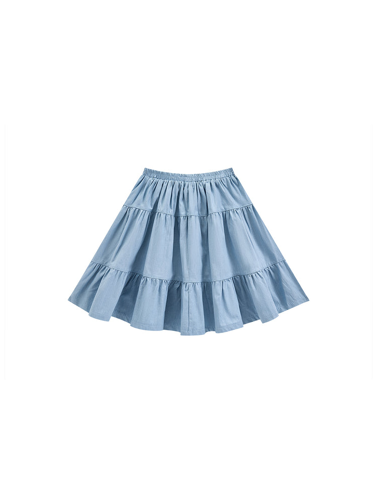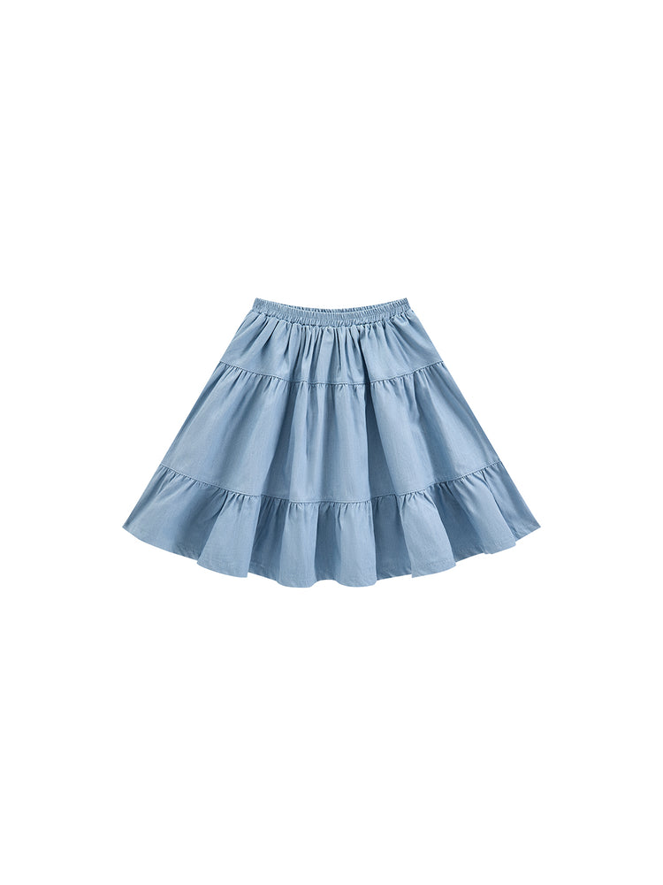 1 Pc. Denim Tiered Skirt - Lt. Blue