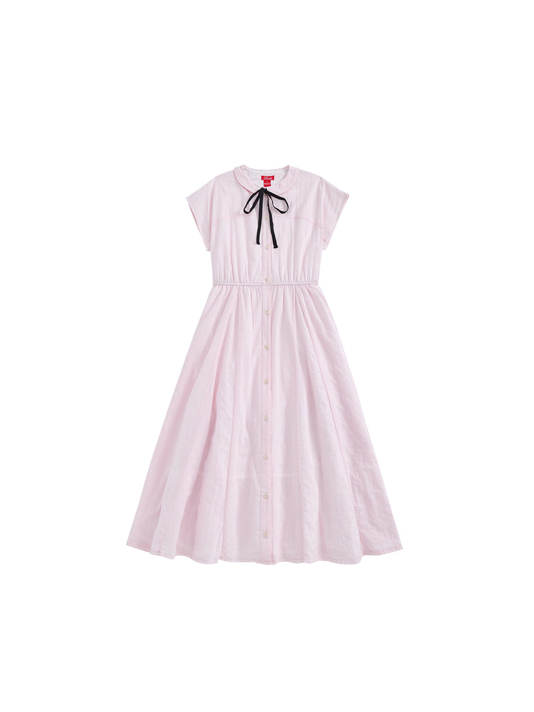 1 Pc. Eyelet Striped Dress - Pink