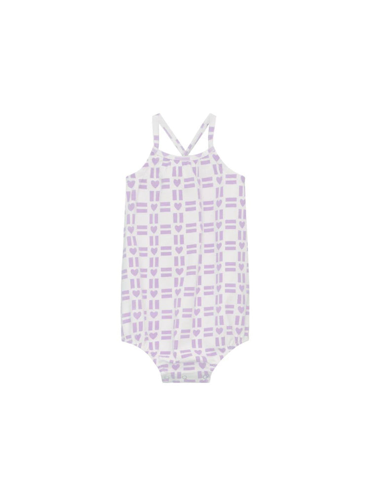 1 Pc. All Over Heart Print Romper - White/Lilac