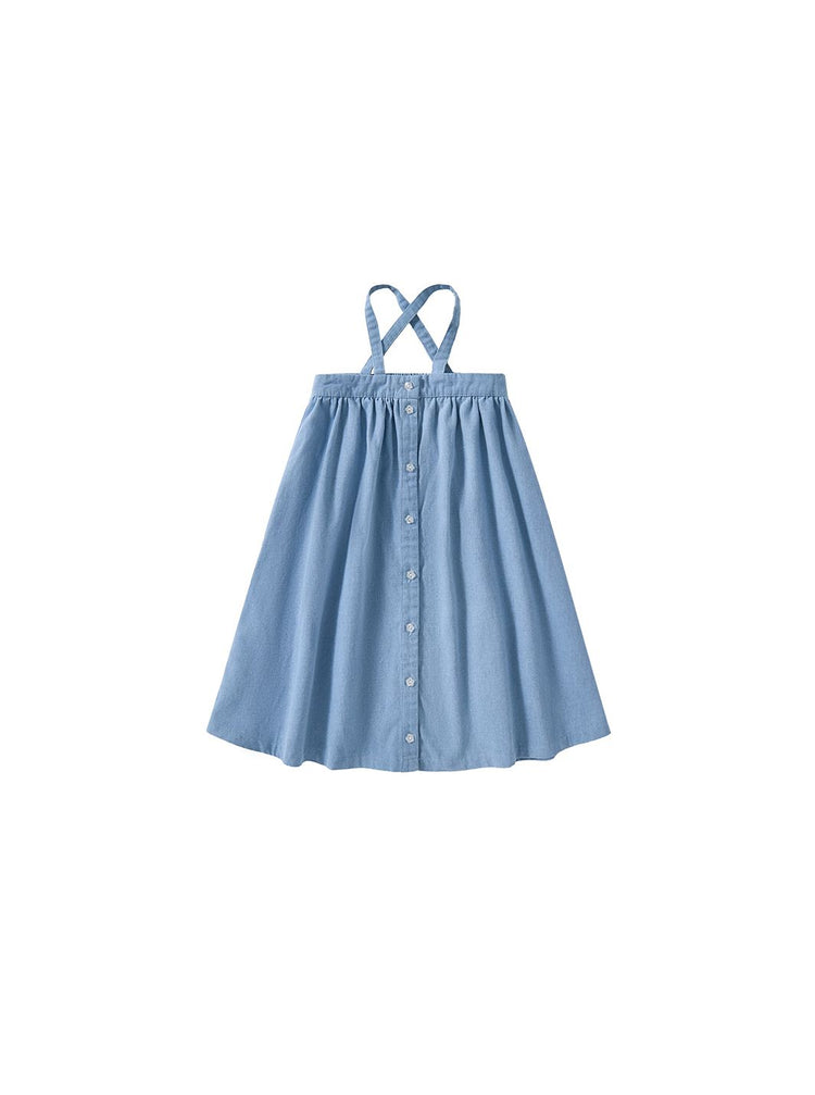 1 Pc. Denim Gathered Jumper - Pale Blue
