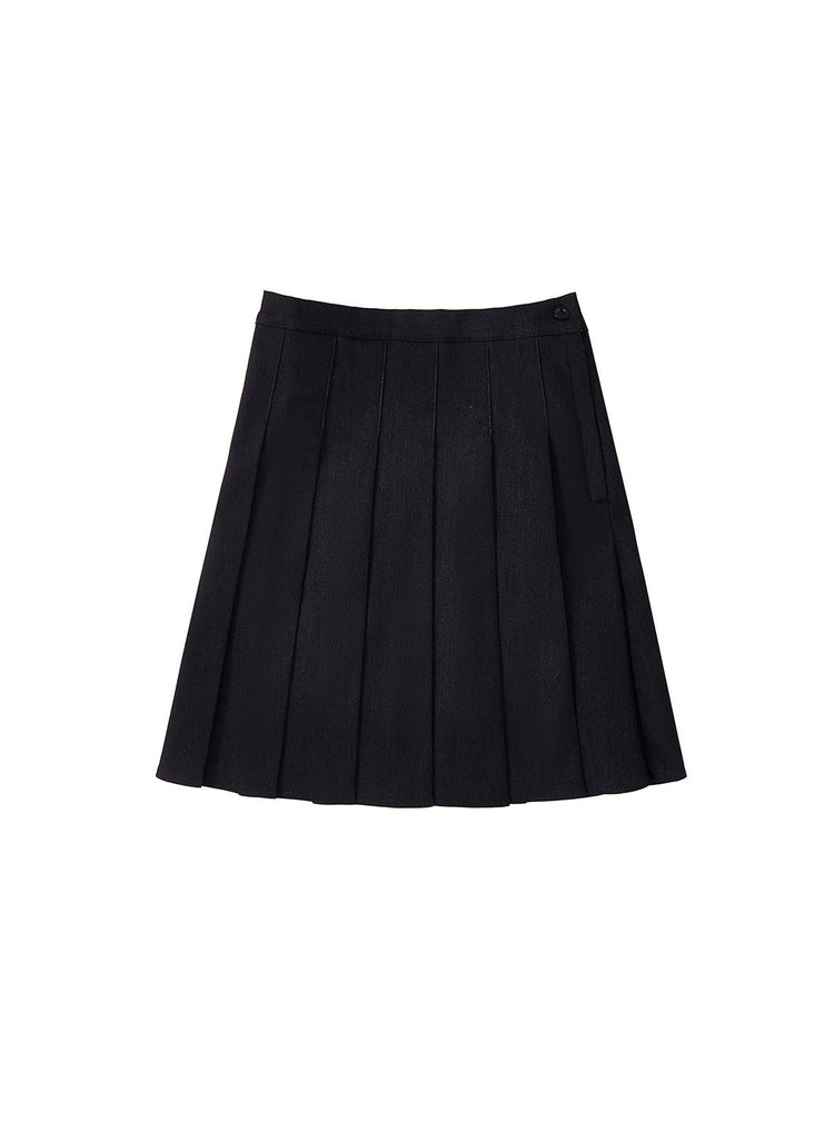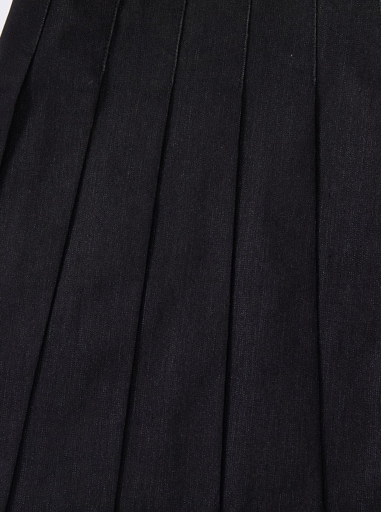 1 Pc. Denim Pleated Skirt - Black