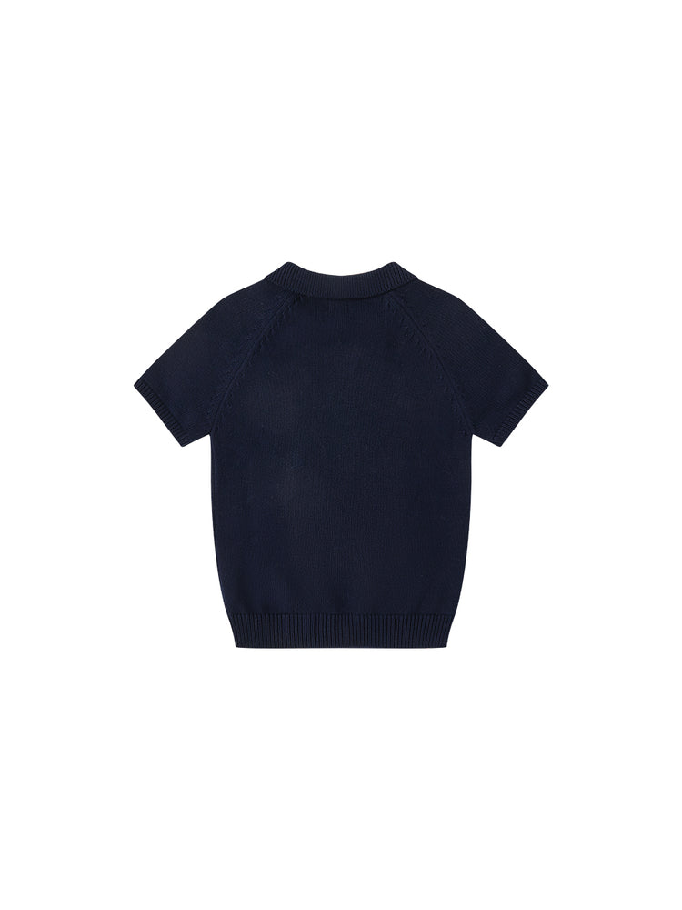 Emblem Short Sleeve Sweater - Deep Navy