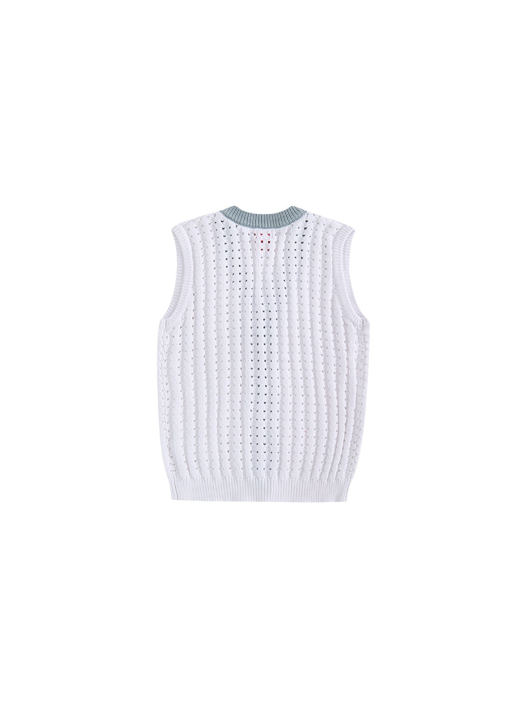 1 Pc. Eyelet Rib Stitch Vest - White/Mint