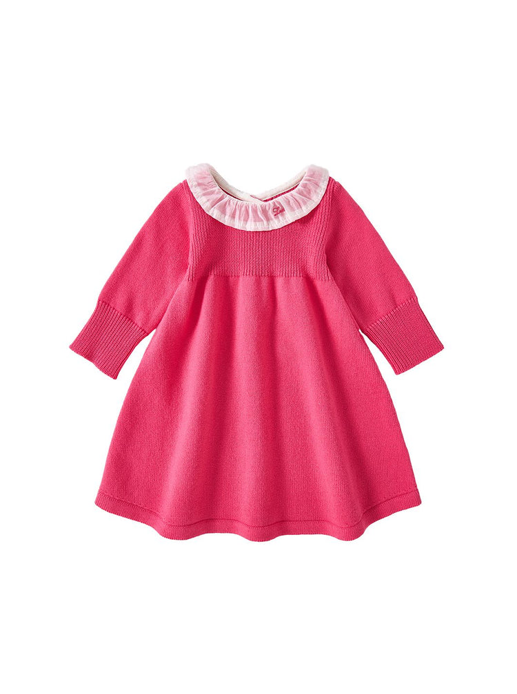 1 Pc. Knit Ruffle Dress - Neon Hot Pink
