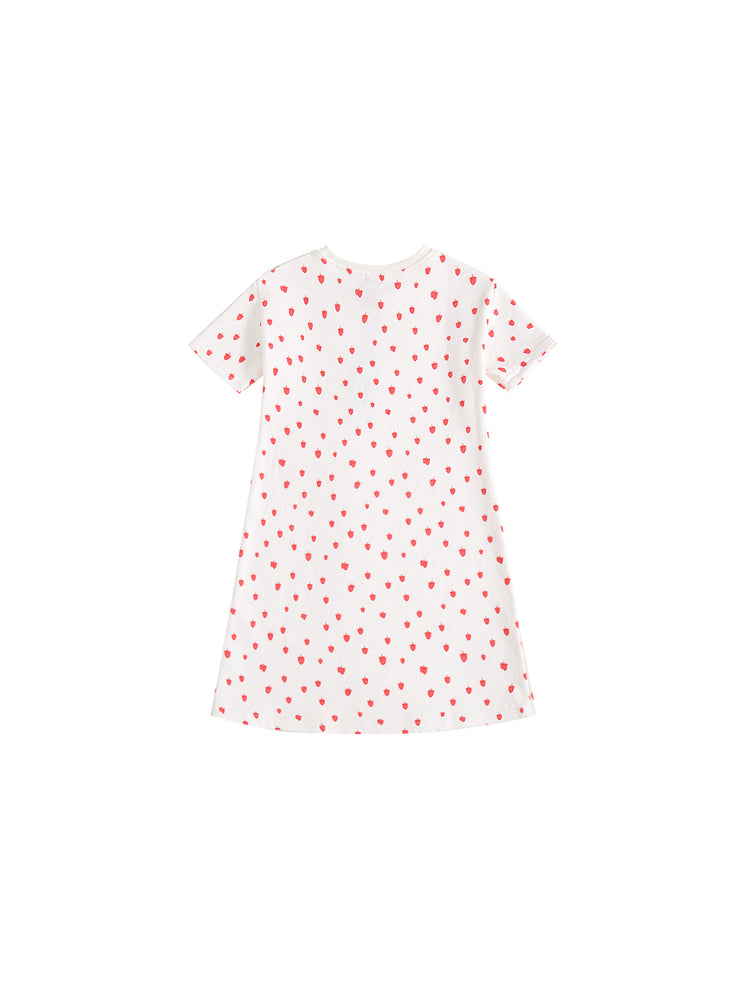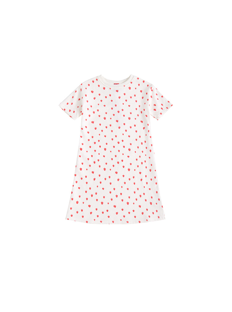 1 Pc. Strawberry Print Short Sleeve Dress - White