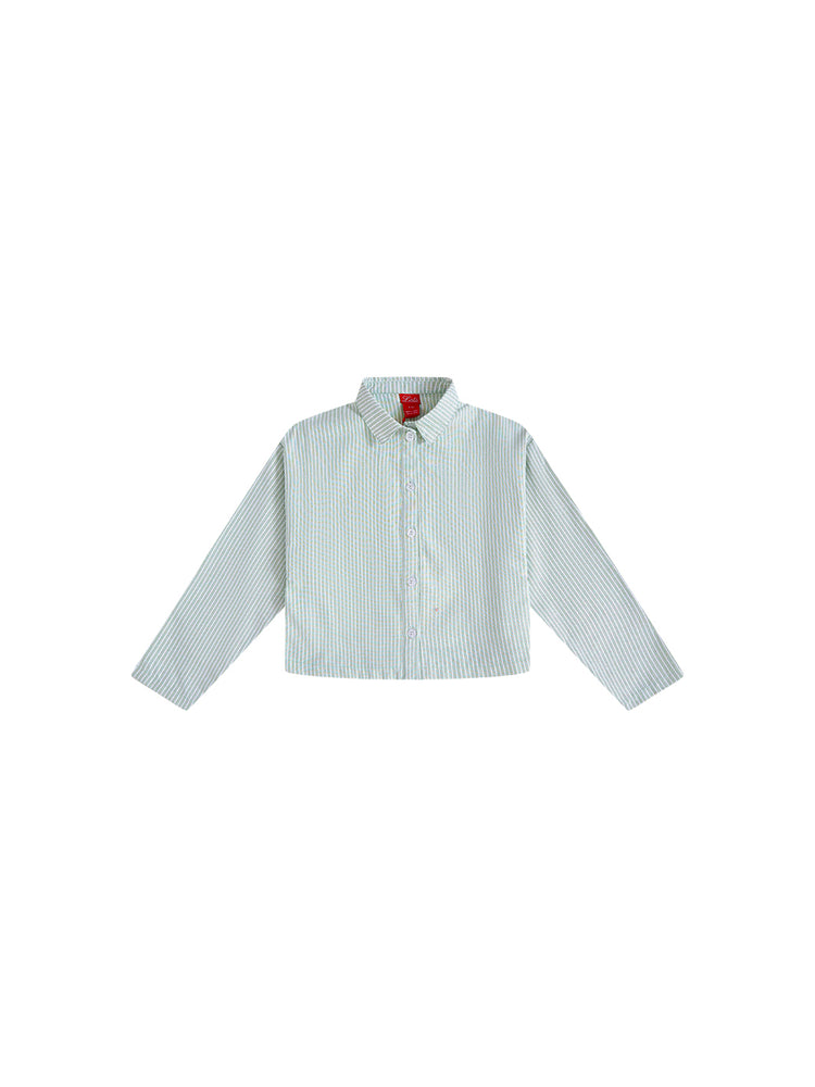 1 Pc. Striped Emblem Crop Shirt - Sage
