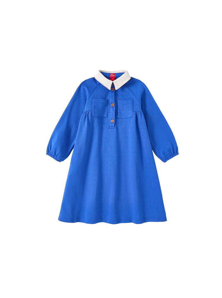 1 Pc. Twill Collar Dress - Deep Royal Blue