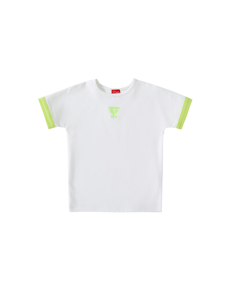 1 Pc. Waffle Short T-shirt - White/Neon Green