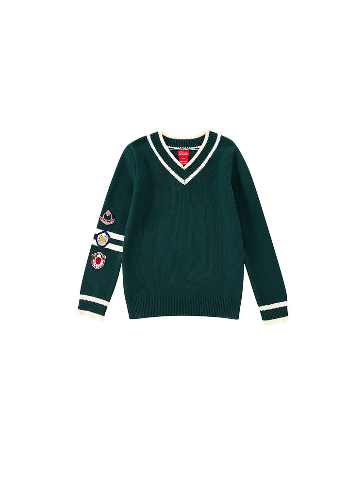 1 Pc. Emblem Combo Stripe Sweater - Forest Green