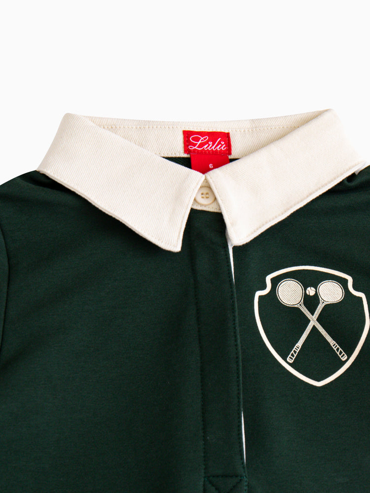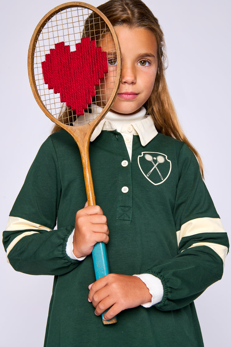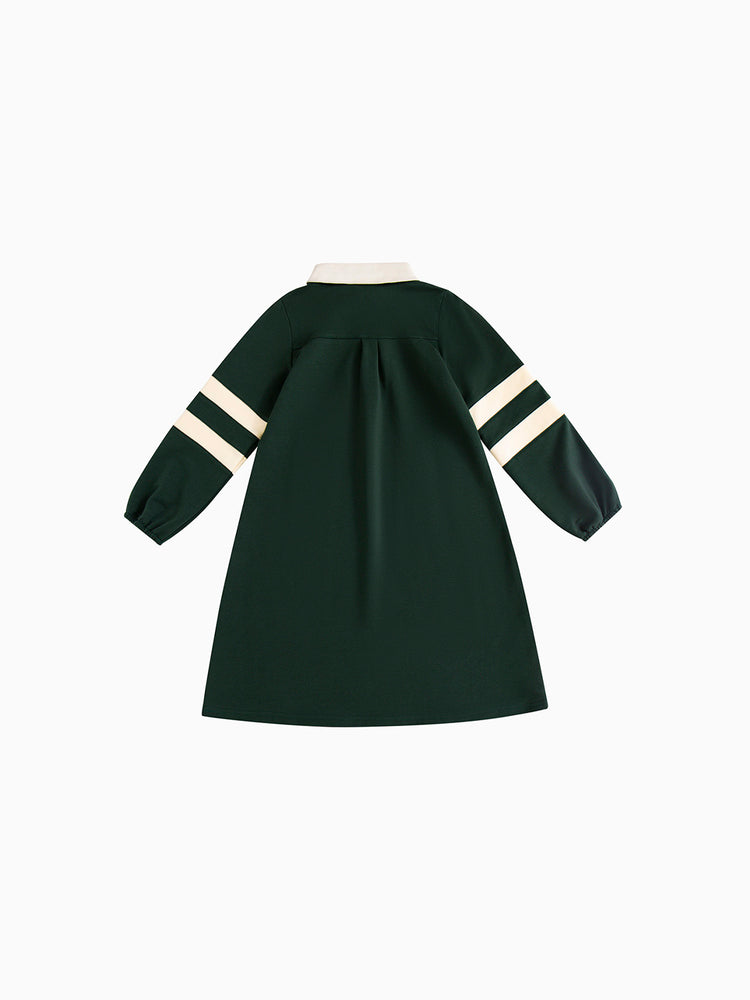 1 Pc. Striped Sleeve Dress - Dk. Green/Off White