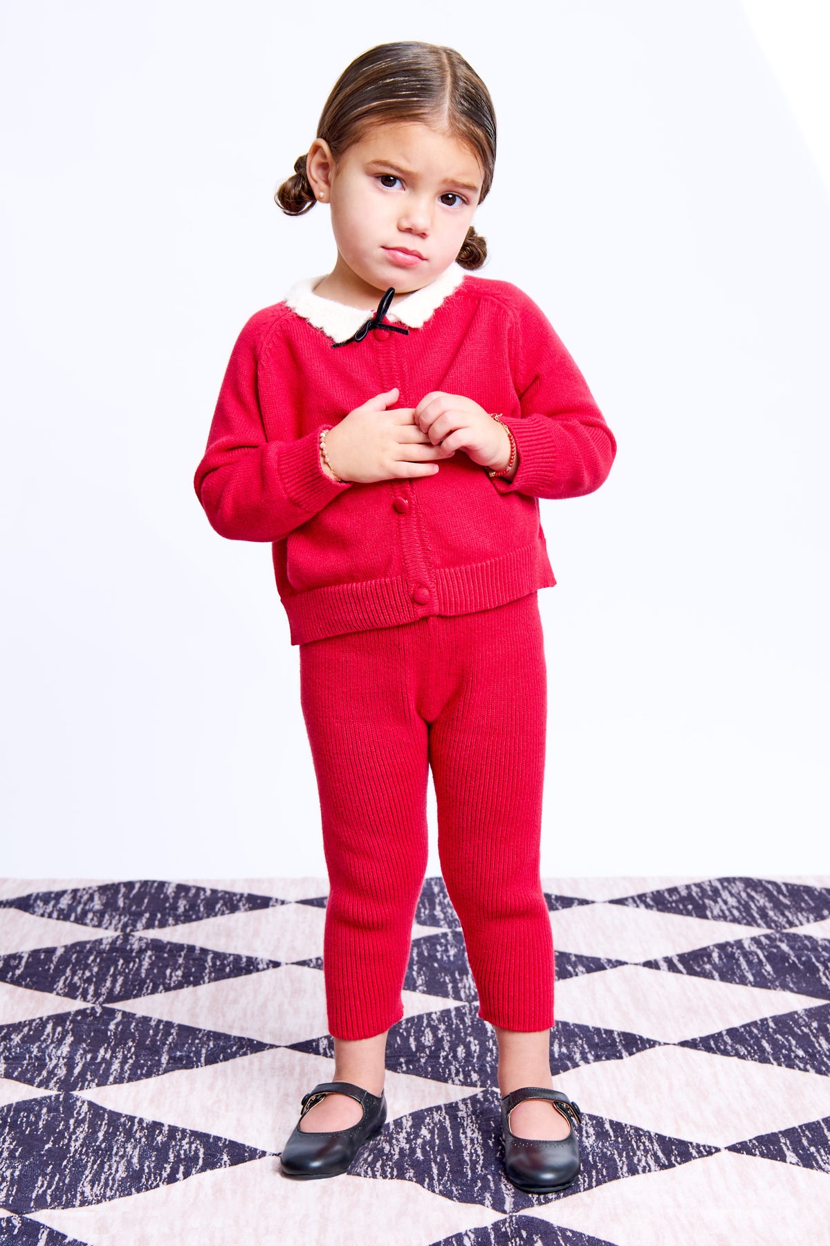 Knitted Scallop Mohair Collar Set - Red Mix